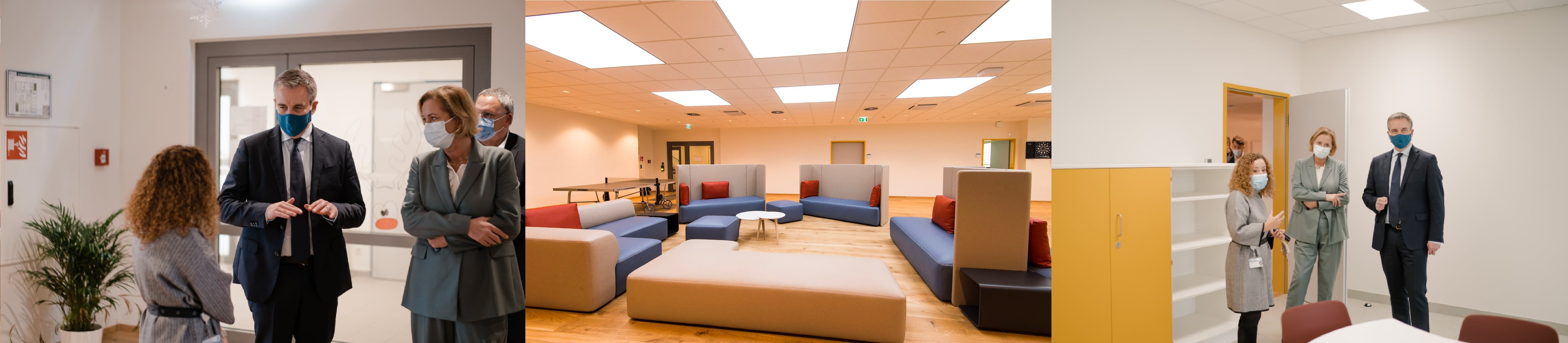 Le 19 novembre 2021 a eu lieu la visite inaugurale du nouveau bâtiment du service de psychiatrie juvénile des Hôpitaux Robert Schuman (HRS) au Kirchberg, qui comprend entre autres une toute nouvelle structure scolaire.