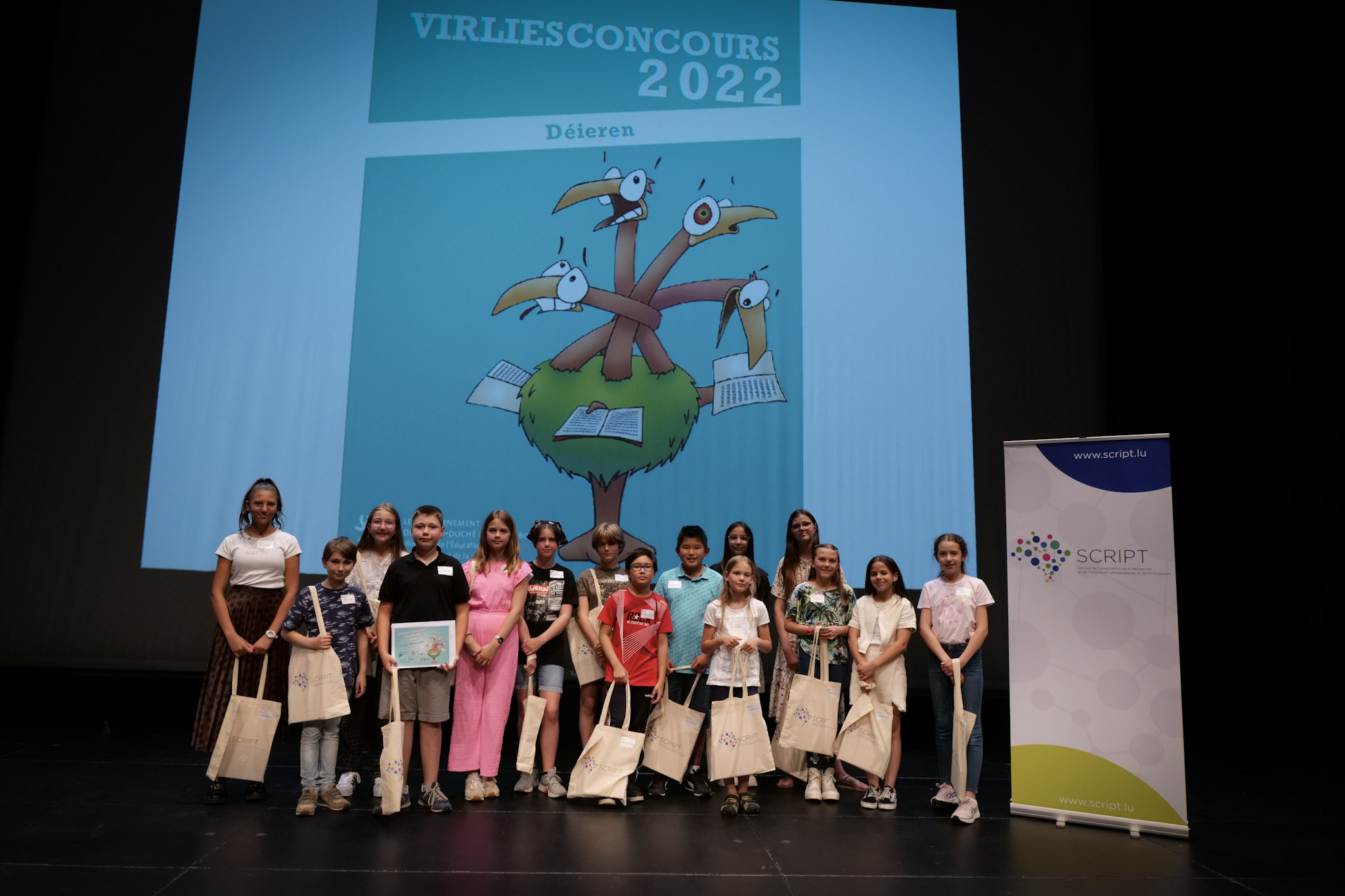 Am Kulturhaus zu Miersch hunn sech den 28. Juni 2022 am Nomëtteg déi 15 Finalistinnen a Finaliste vum Virliesconcours getraff. Dës Schüler aus dem Cycle 4, véier Jongen an eelef Meedercher, hate sech ënnert méi wéi 4.500 Participanten am ganze Land qualifizéiert, fir an d’Finall ze kommen an en Text iwwer „Déieren“, d’Theema fir dës 17. Editioun vum Virliesconcours, ze presentéieren.