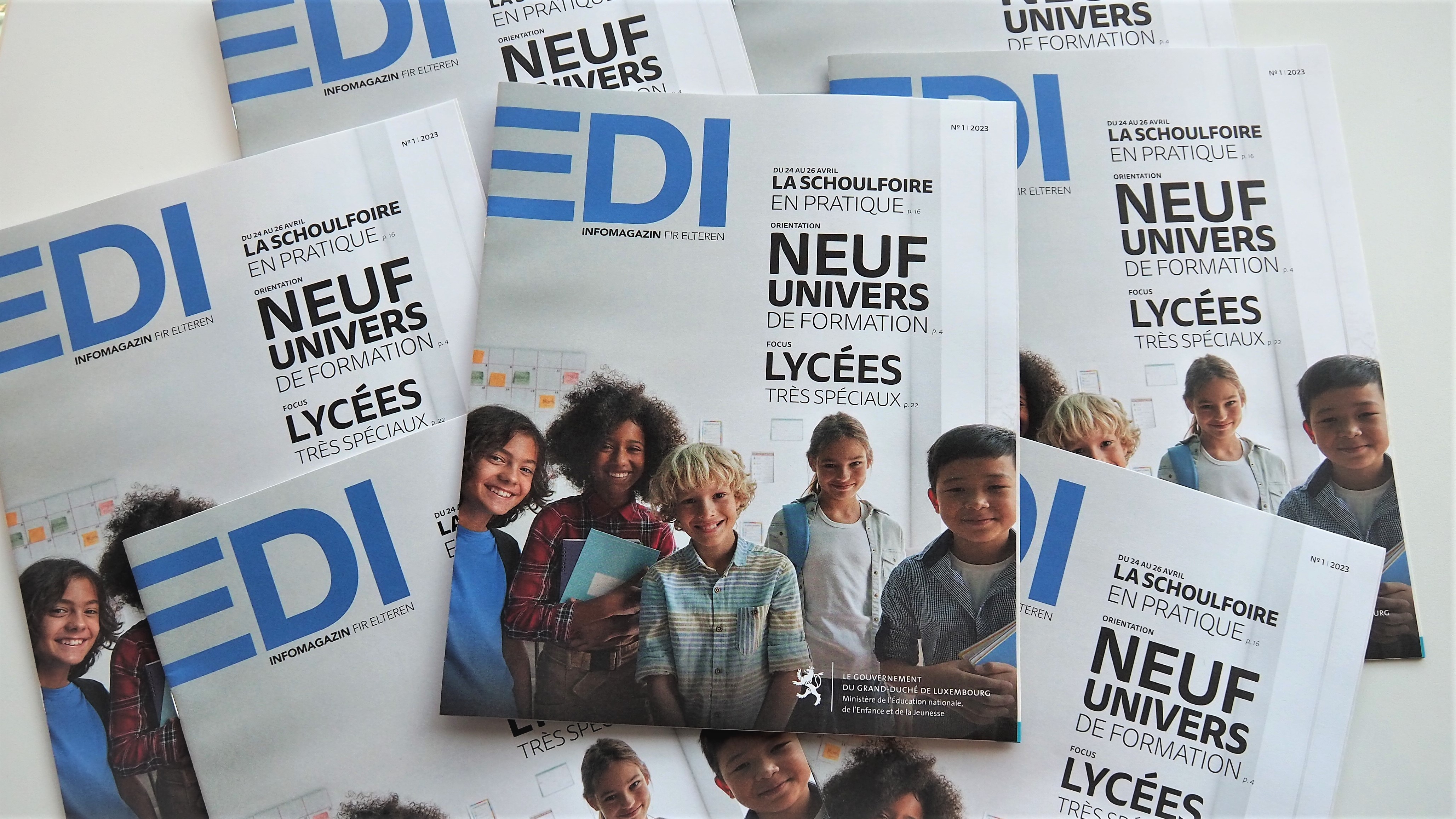 La nouvelle édition du magazine EDI-Infomagazin fir Elteren, publié par le ministère de l’Éducation nationale, de l’Enfance et de la Jeunesse, explore la diversité du paysage éducatif luxembourgeois. Les lecteurs voyagent à travers neuf univers de formation, définis en fonction des talents et des intérêts des enfants et des jeunes parmi plus de 170 sections de l’enseignement secondaire classique et général ou formations professionnelles de tous niveaux.