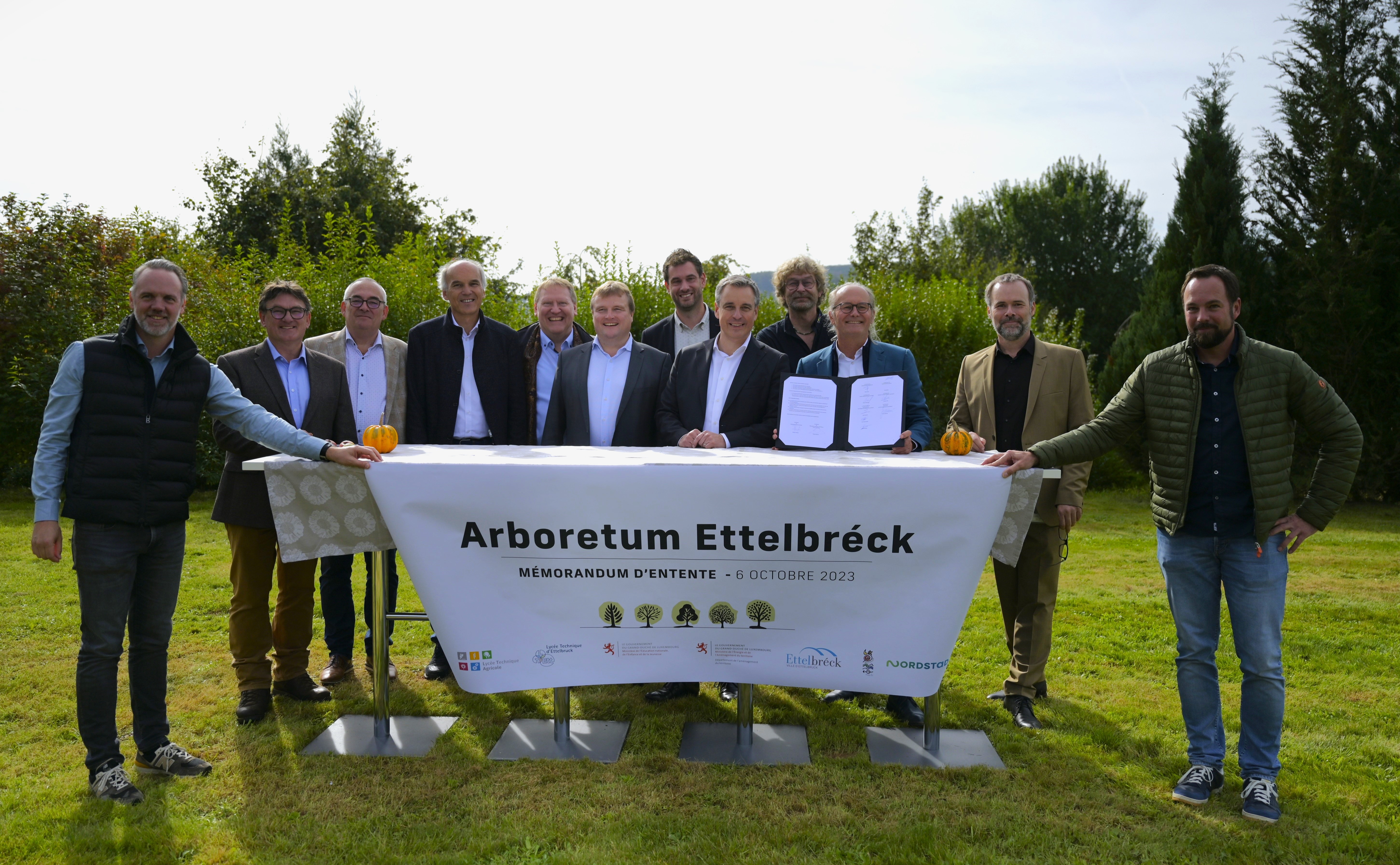 Le 6 octobre 2023 le ministre de l’Aménagement du territoire, Claude Turmes, le ministre de l’Éducation nationale, de l’Enfance et de la Jeunesse, Claude Meisch, le directeur du Lycée technique de Ettelbruck, Fränk Fries, le directeur du Lycée technique agricole, Tom Delles, le directeur du Musée national d’histoire naturelle, Patrick Michaely, le collège des bourgmestre et échevin de la ville d’Ettelbruck, le Syndicat à vocation multiple « Nordstad », ainsi que les bénévoles actifs dans le projet, Eike Jablonski et Thomas Rob, ont signé un mémorandum d’entente relatif à la conservation du patrimoine naturel et de la promotion scientifique et pédagogique de l’arboretum LTEtt à Ettelbruck.