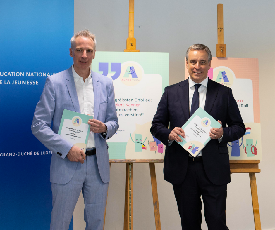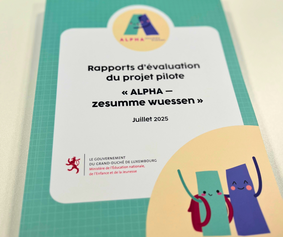 Den 11. Juli 2025, huet de Minister fir Educatioun, Kanner a Jugend, Claude Meisch, d’Haaptresultater vun den Evaluatiounsrapporte vum Projet „ALPHA – zesumme wuessen“ virgestallt, dëst a Presenz vun den Auteuren, déi un dëse Rapporte matgeschafft hunn.