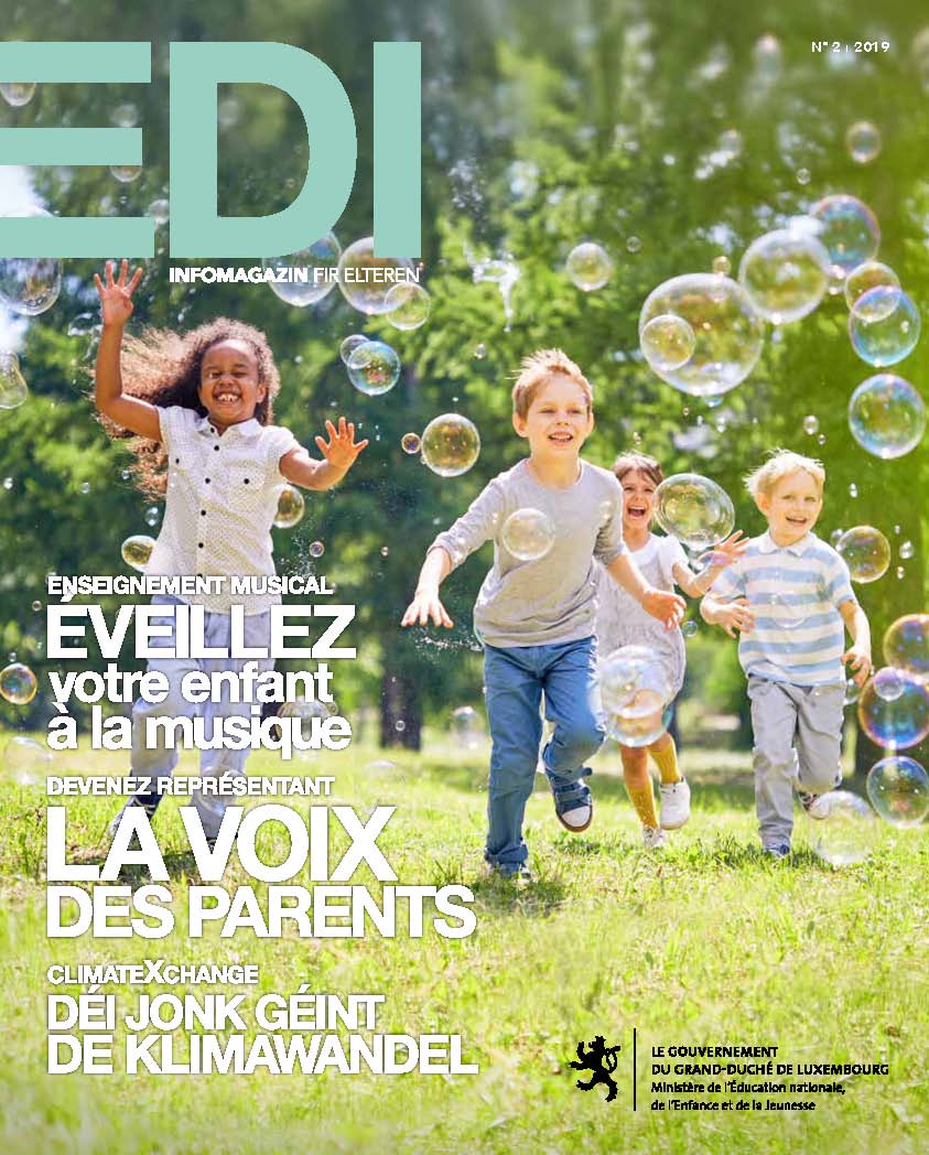 Publié par le ministère de l’Éducation nationale, de l’Enfance et de la Jeunesse, EDI-Infomagazin fir Elteren est distribué deux fois par an – à la rentrée scolaire et pendant le deuxième trimestre – et vise à informer les parents sur les nombreuses réformes et améliorations mises en œuvre dans tous les domaines d’action du ministère.