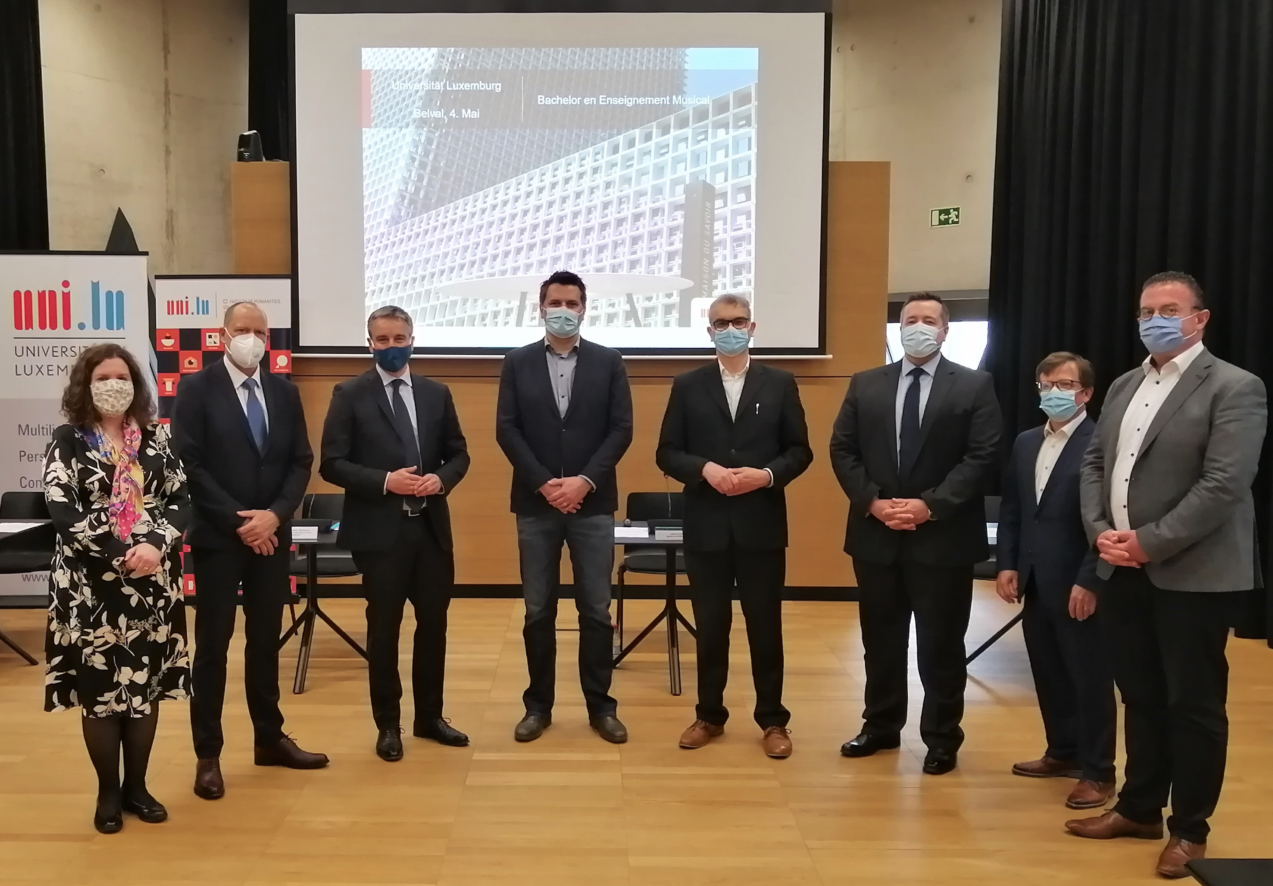 Le nouveau bachelor en enseignement musical a été présenté le 4 mai 2021 par le ministre de l’Éducation nationale, de l’Enfance et de la Jeunesse et ministre de l’Enseignement supérieur et de la Recherche, Claude Meisch, la vice-rectrice académique de l’Université du Luxembourg, Catherine Léglu, le doyen de la Faculté des Sciences Humaines, des Sciences de l’Éducation et des Sciences Sociales, Georg Mein, et Gilbert Busana, Senior Lecturer à la Faculté des Sciences Humaines, des Sciences de l'Éducation et des Sciences Sociales.