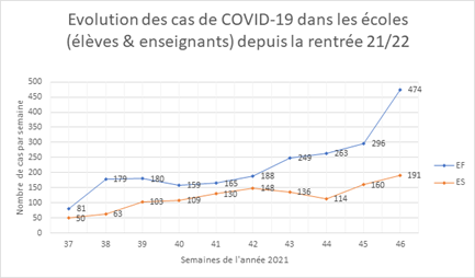 Le Conseil de gouvernement réuni le 26 novembre 2021 a décidé un ajustement des mesures sanitaires en vigueur afin d’endiguer la propagation du SARS-CoV-2 au sein de la population. Le dispositif sanitaire de l’Éducation nationale a été adapté en conséquence.